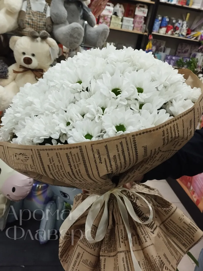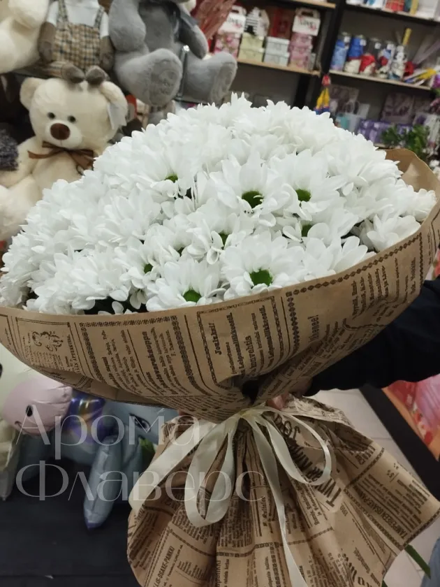 Букет из белоснежных хризантем «Снежная красота»