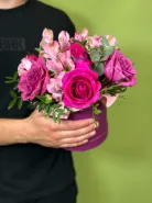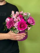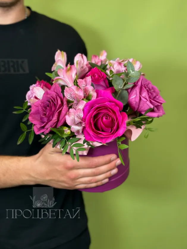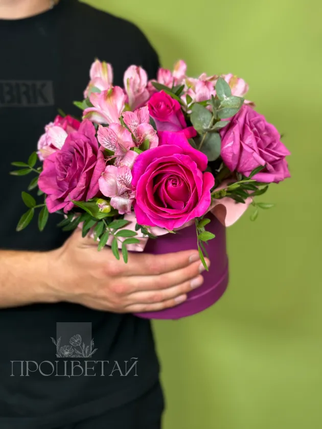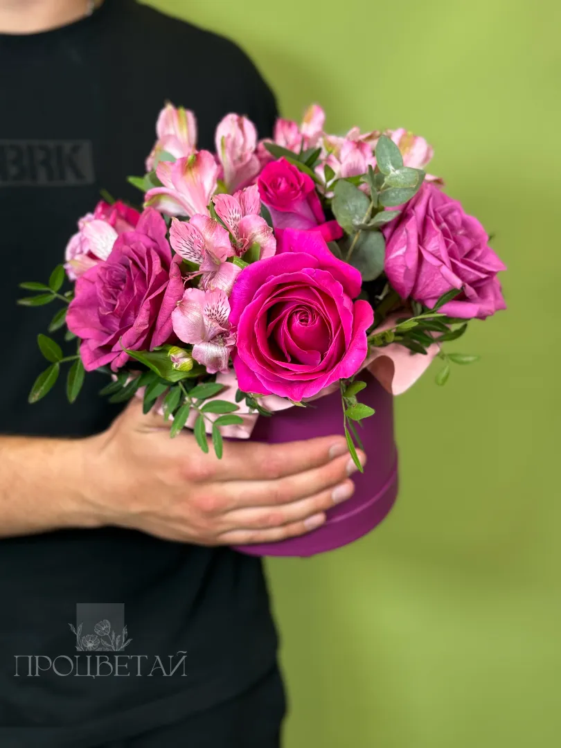 Композиция в шляпной коробке «Малиновый десерт»