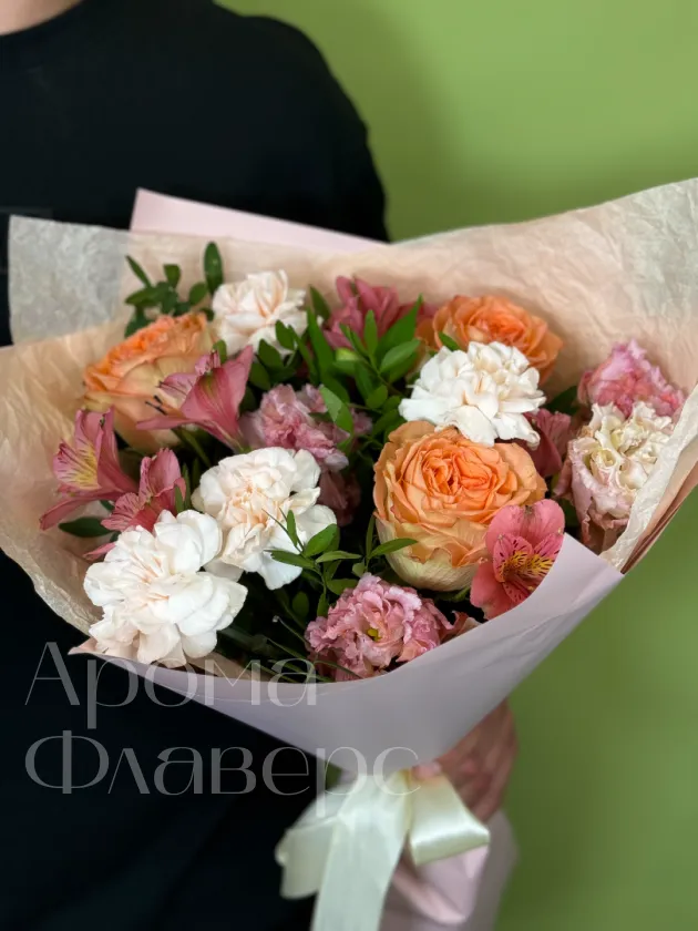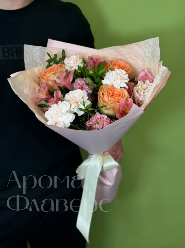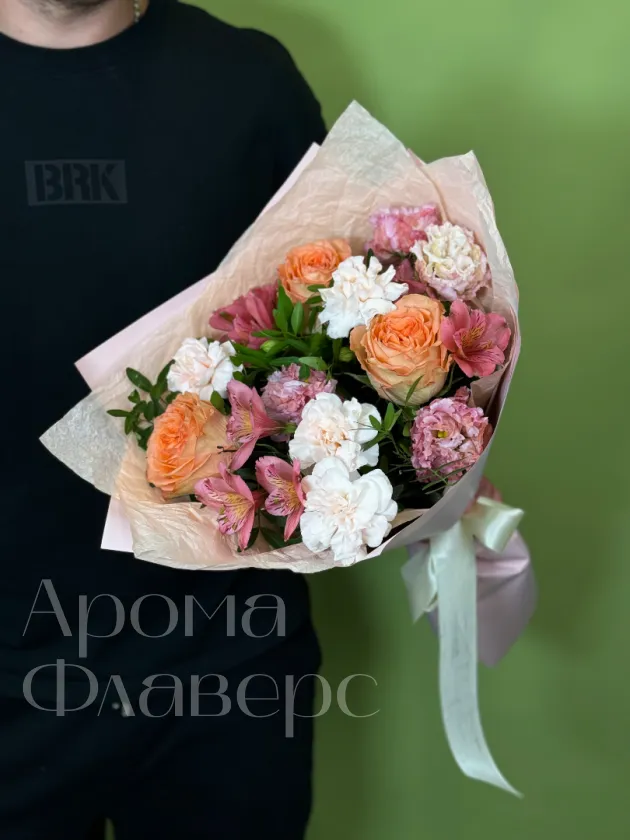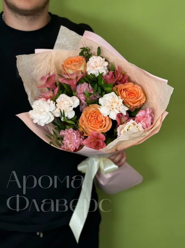 Сборный букет с розами, диантусами и альстромерией