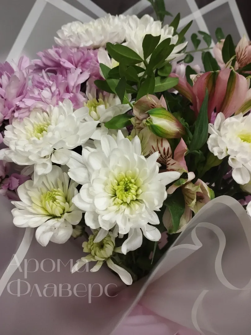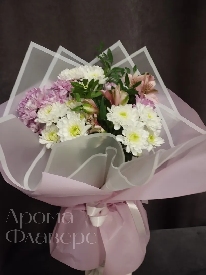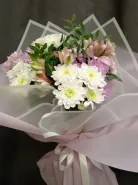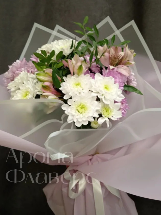 Нежный букет, состоящий из белых и розовых цветов, идеально подходит для выражения искренних чувств и эмоций. Букет станет прекрасным подарком для близкого человека, выражая заботу и внимание.