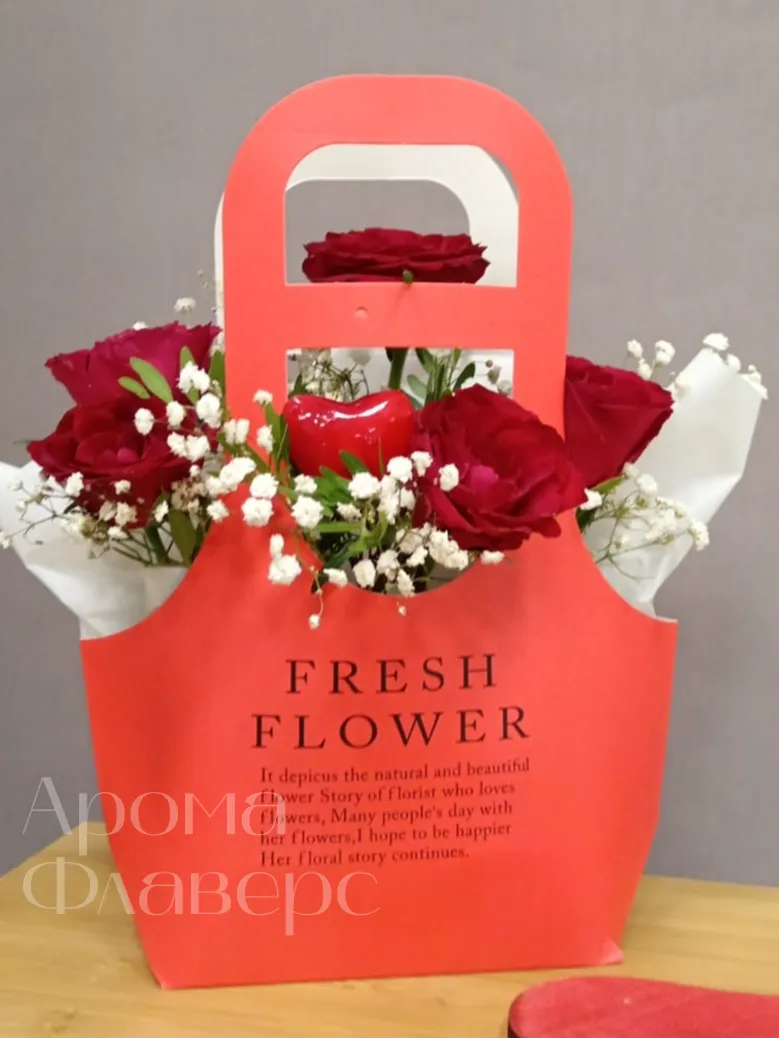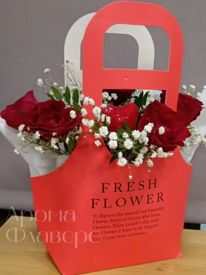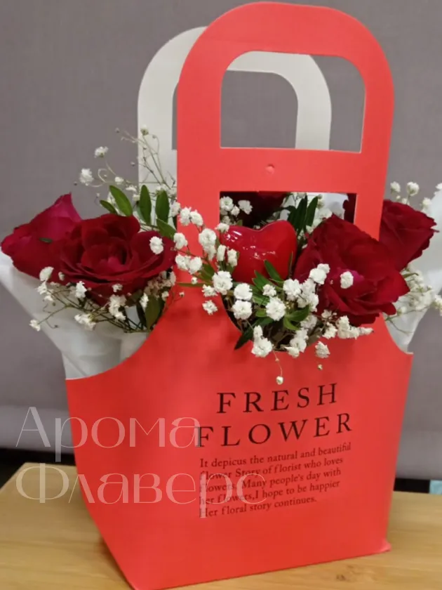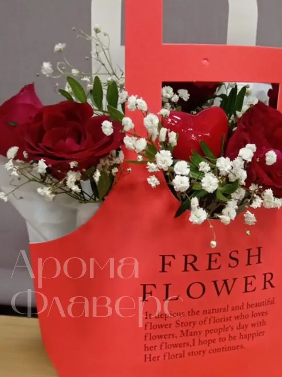 Букет из ярких алых роз, дополненный нежными белыми гипсофилами, создает романтичный и трогательный образ. Композиция идеально подойдет для выражения чувств и эмоций. Розы символизируют любовь и страсть, а гипсофила добавляет воздушность и легкость.