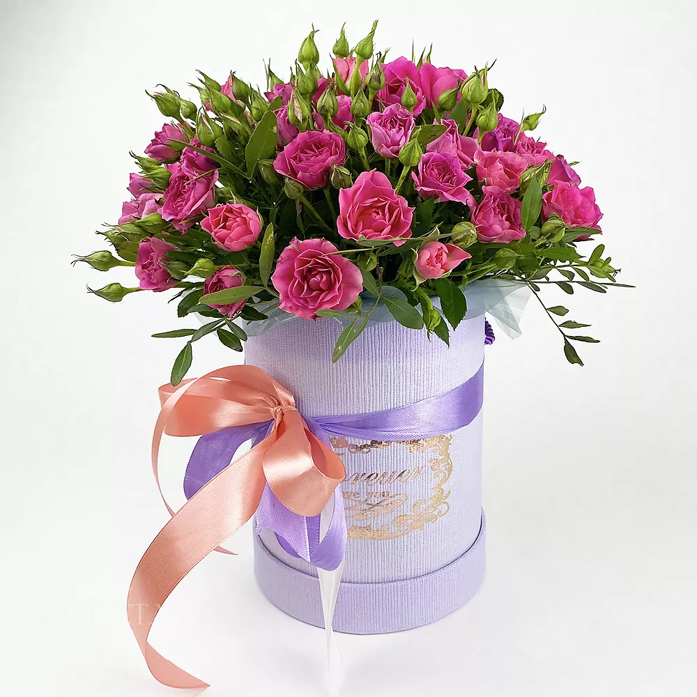 кустовые розы в шляпной коробке, незаменимая классика