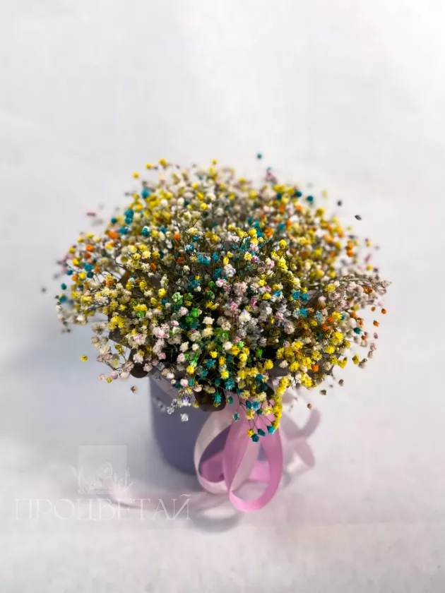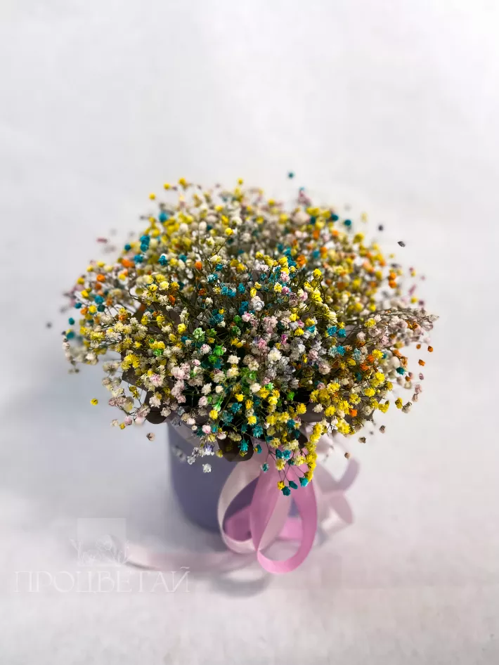 Такой букет в шляпной коробке можно преподнести в знак восхищения и любви.