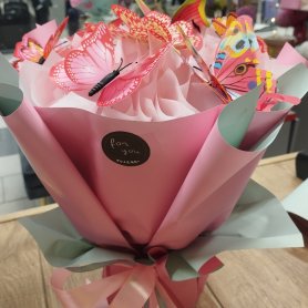 Светящийся букет - прекрасный подарок для тех, кто любит лёгкость и красоту. Розовые и белые тона добавляют элегантности, а яркие бабочки придают игривый оттенок. Букет идеально подойдёт для подарка близкому человеку или как оригинальное украшение для особого случая. Хотите сделать сюрприз, подарите букет в темноте.