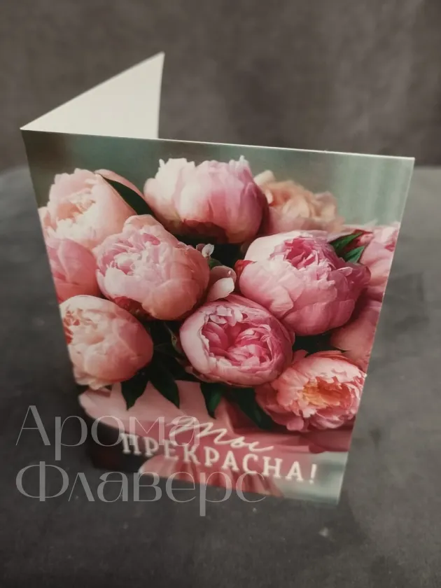 Открытка с пожеланиями для клиента, инструкция по уходу за букетом, удобрение для продления цветения.