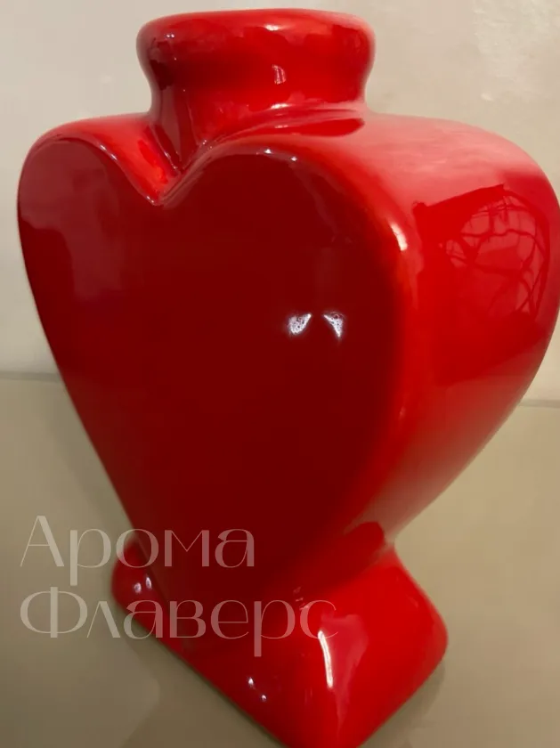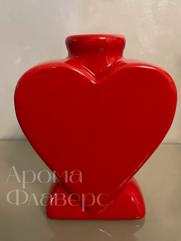 Красная ваза в форме сердца. Ваза «Сердце» - изящный и романтичный аксессуар для вашего интерьера. Благодаря своей форме в виде сердца она станет прекрасным дополнением к любому романтическому празднику или просто добавит тепло и уют в ваш дом.
